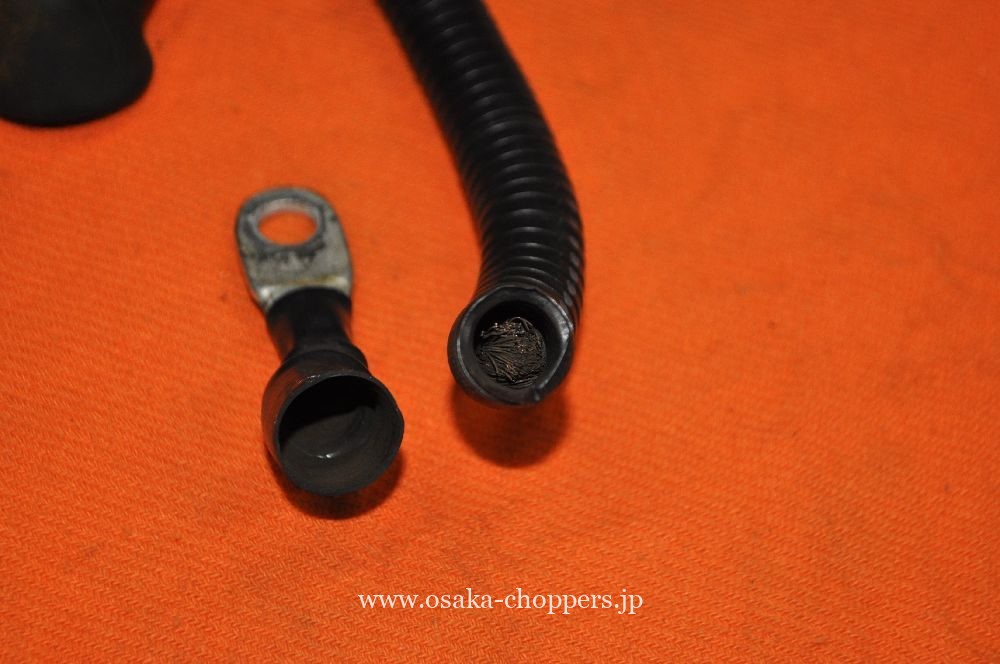 XLH883 始動不良 Posted on 2019年10月16日 by sumikawa 木村さん、出来ましたよ(^^) 急患で運ばれてきた883。写真撮る前に降ろされてた。。。 今回御依頼のありましたXLH883、始動不良というより走行不良修理かな・・・ 突然止まってうんともすんとも言わないとの事で運ばれてきました 原因はこれ バッテリーのプラスケーブル 千切れてます 中で切れてるから外からは分からない プラスが外れてる状態なので当然うんともすんとも言わないですね・・・ そもそもの原因はこれ 此処のラバーマウントボルト 此処 1個は生きてたけどこの際替えときます 此処が揺れて揺れてがバッテリーに伝わって根元にきたと思われます 18年戦士なので仕方ないかな。。。 Post navigation ← FLHR オイル漏れ他去勢手術 →