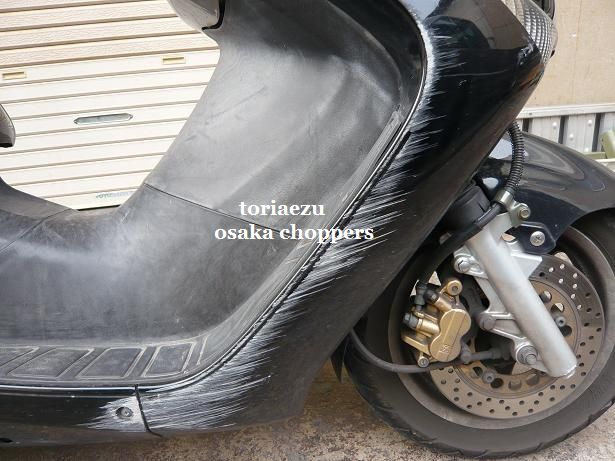 バイクのカウルと同じ傷が私めのひざにも・・・