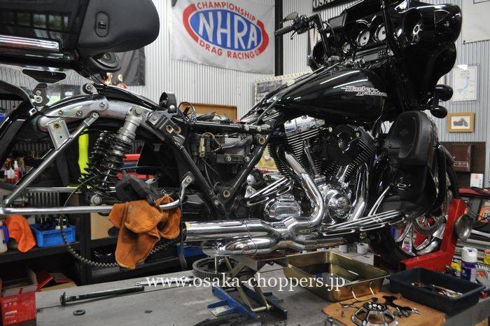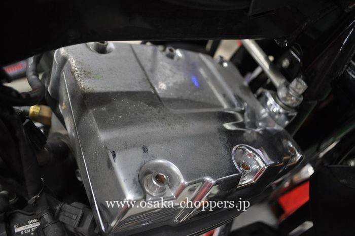 エンジン下部やプライマリー下部にオイル漏れの跡があるのですが、ドレンボルトが原因かも?なので暫く様子見てもらいます。。。