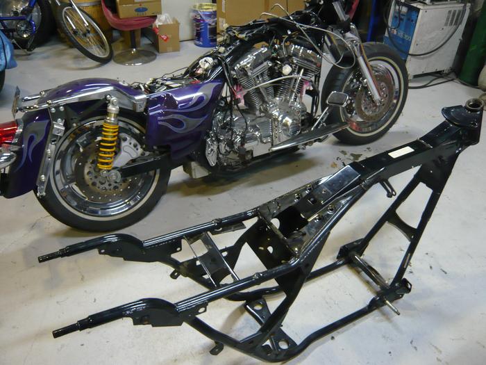 ’02 FLHRSE-I 現況報告 Posted on 2008年6月28日2016年12月15日 by sumikawa そろそろ、おっ始めます!まずはフレーム塗装! 今回はCVOの紫色にフレームを塗り替えます。 これから一旦全部バラバラにするので、元に戻しやすくする為と、パーツが散乱しないように、以前フレーム交換して抹消されたフレームにパーツ(ハーネス等)を移していきます。 Post navigation ← NEW ORDER CHOPPER SHOW’02 FLHRSE-I 現況報告つづき →