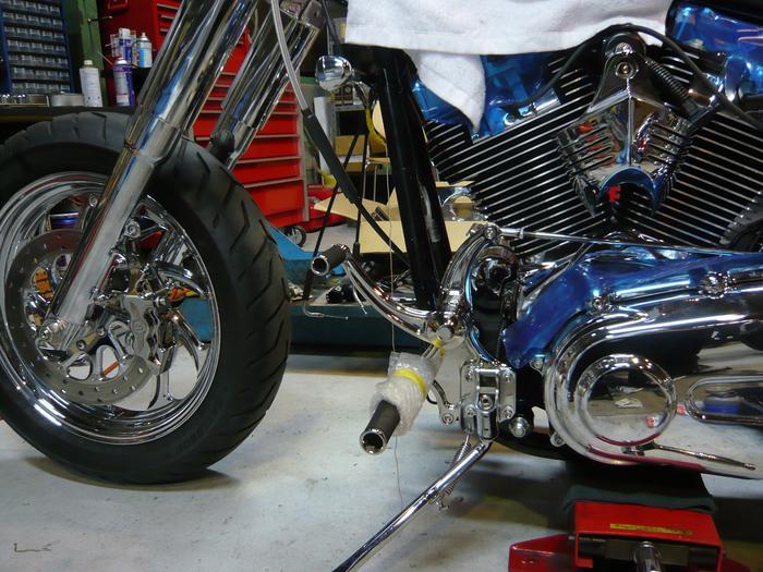 昨日に続いて今日もファットボーイのカスタムです。ハンドル回りはケーブル類の部品待ちなんで今日はフォワコンに取り掛かります。 P1010530.JPGのサムネール画像