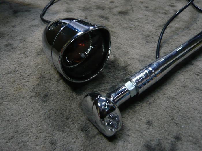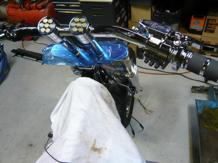 ウインカーも小型LEDに変更。ハンドルまわりもすっきりとさせていきます。