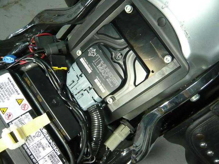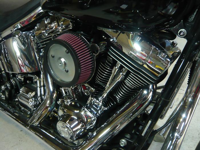 今回は’03FLSTC-Iのサンダーマックスの取り付けです。O2センサーがないのでモジュールを交換するだけです。あと、エアクリーナーがノーマルだったのでハイフローエアクリーナーに交換します。(サンダーマックスはエアクリーナーが交換されているのが前提です)