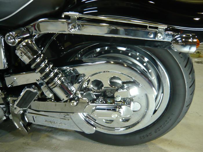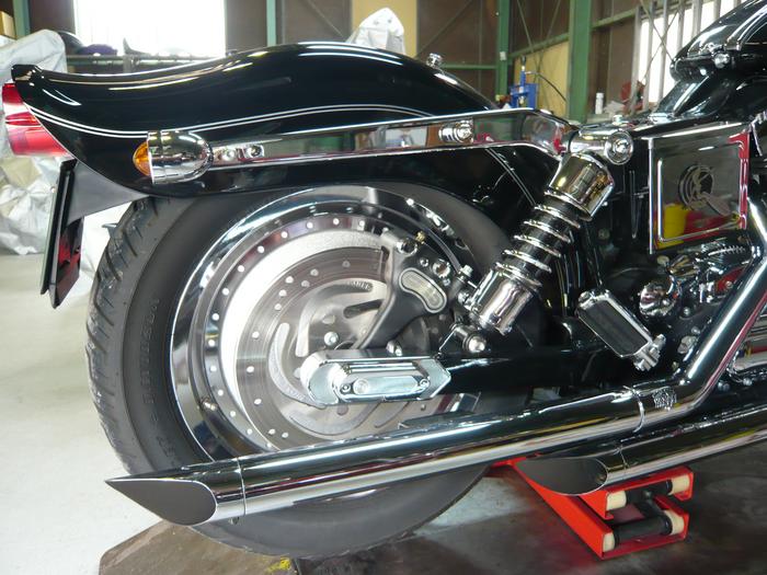 ’05 FXDWG カスタム Posted on 2008年2月29日2016年12月1日 by sumikawa 現在カスタム中のFXDWG。ようやく完成目前! befor 今回はリア回りで、スイングアームをクロームメッキにして、ブレーキローター、キャリパーをパフォーマンスに変え、テールランプをネス製LEDキャッツアイにします。 スイングアームはこの純正を使ってクローム処理しました。 after またまた走らすのが勿体無い車両になってしまいました。 おしゃれは足元から・・・この言葉は人間だけに当てはまる言葉ではないみたいです。 Post navigation ← ’94 FXSTC 腰上O/H’01 FLSTF 武蔵カスタム 現況報告 →
