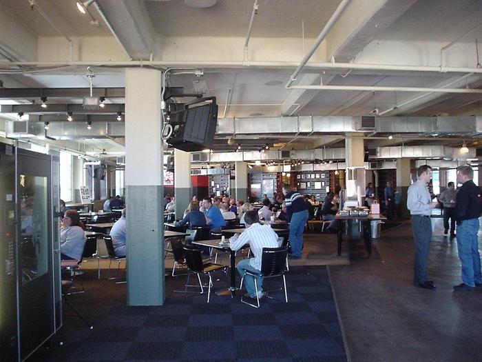 丁度屋上の白いタンクの下が大食堂になっていて、みんなここで飯を食べるので結構広かったです。
