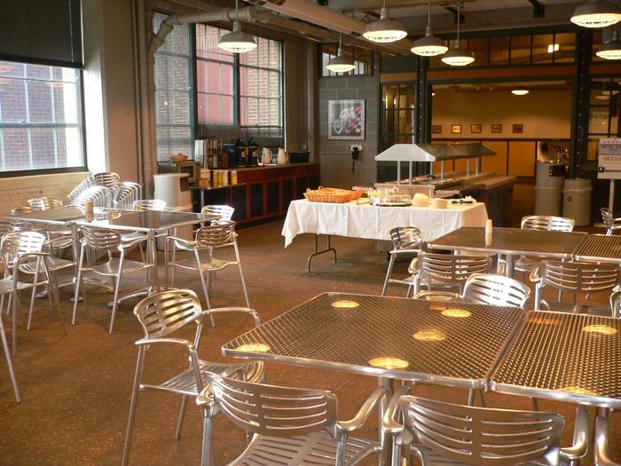 大食堂で食べたのは1日だけであとはその下のこちらの小食堂(休憩所)で食べてました。