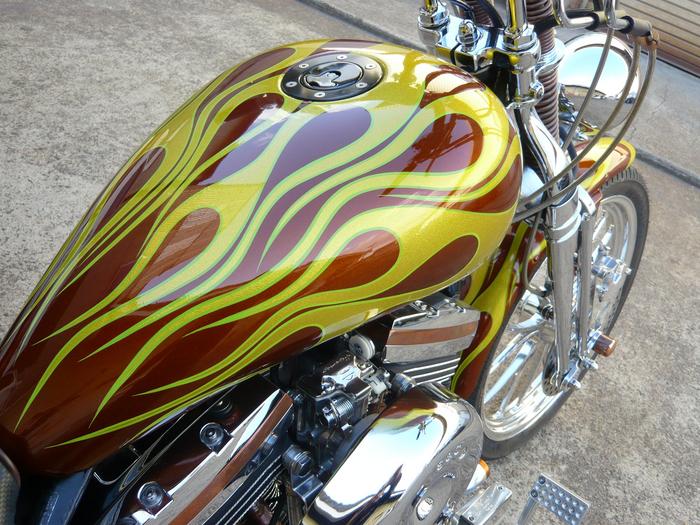 これは昨日の’05FLSTFです。うっすらフレアーが入って渋めに仕上がってます。