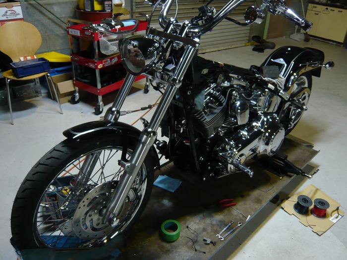 たった今、知る日とぞ知るハーレー屋まつもとで修理があがった車両でそのまま来店されてリアボックスの取り付けとなりました。