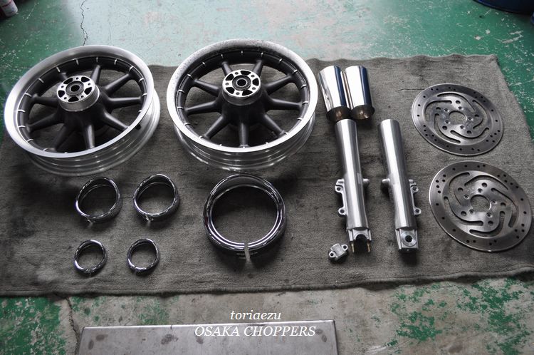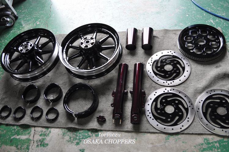 今回御依頼のありましたFLHR、足周り、トリム類の塗装